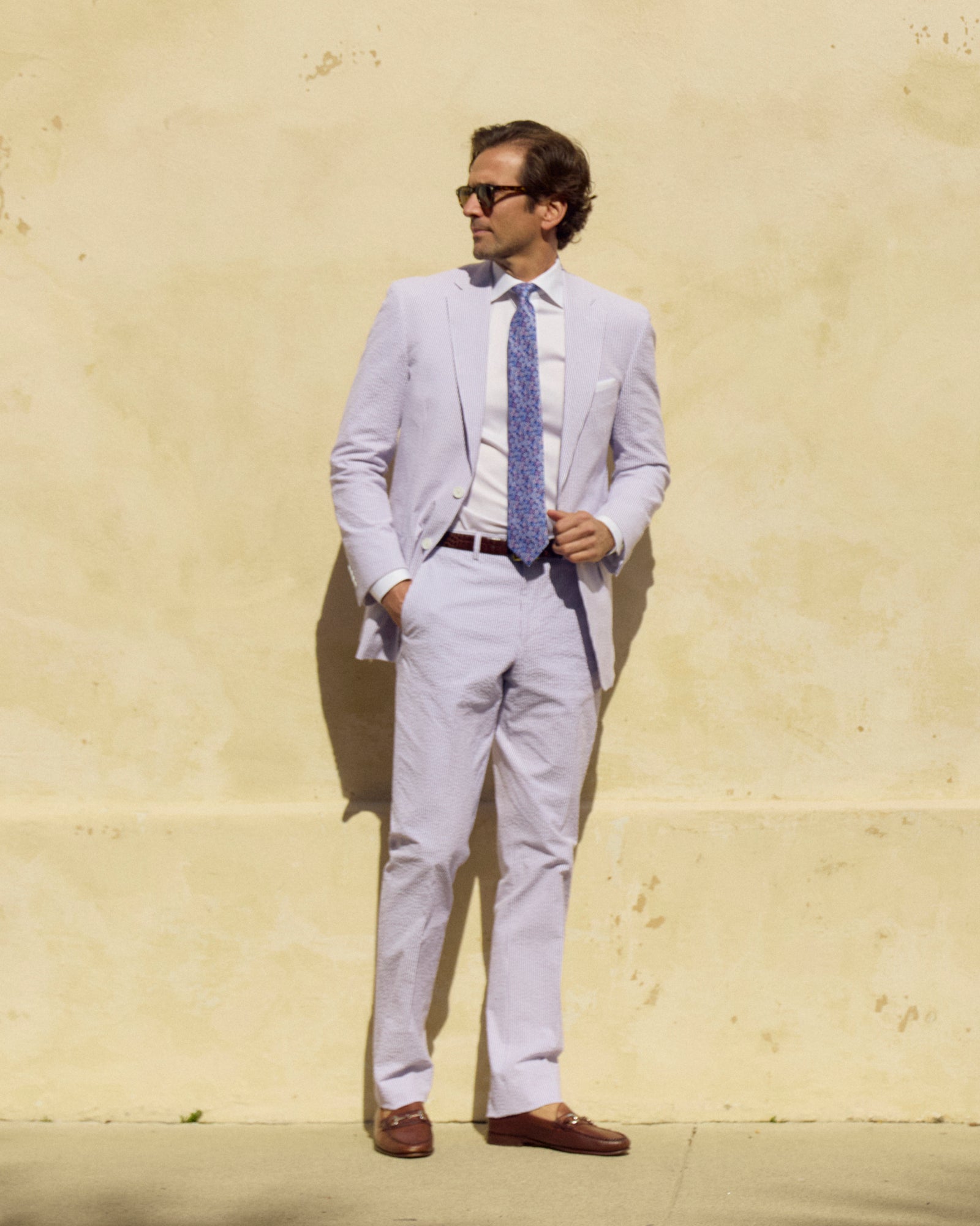 A solid look for a solid guy. Seersucker, lightweight, and supremely cool.