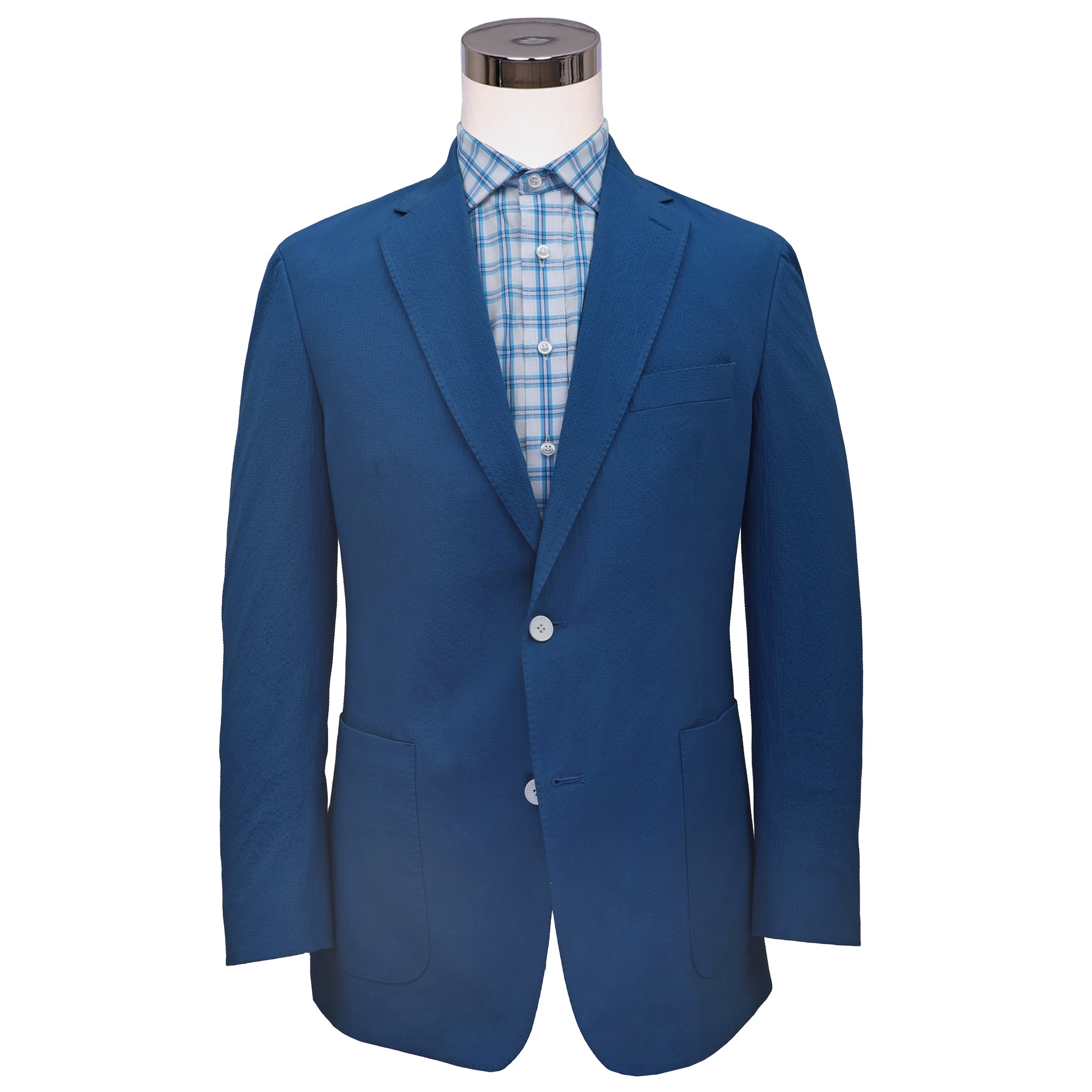 The Toulouse Royal Blue Seersucker Sport Coat is THE piece your wardrobe has been waiting for. Crafted in Haspel Exclusive Seersucker Stretch Fabric, this coat delivers exceptional breathability without compromising on refined style—ideal for warm-weather good times. The rich royal blue hue transcends seasons, pairing effortlessly with neutrals or complementary tones for endless outfit possibilities.