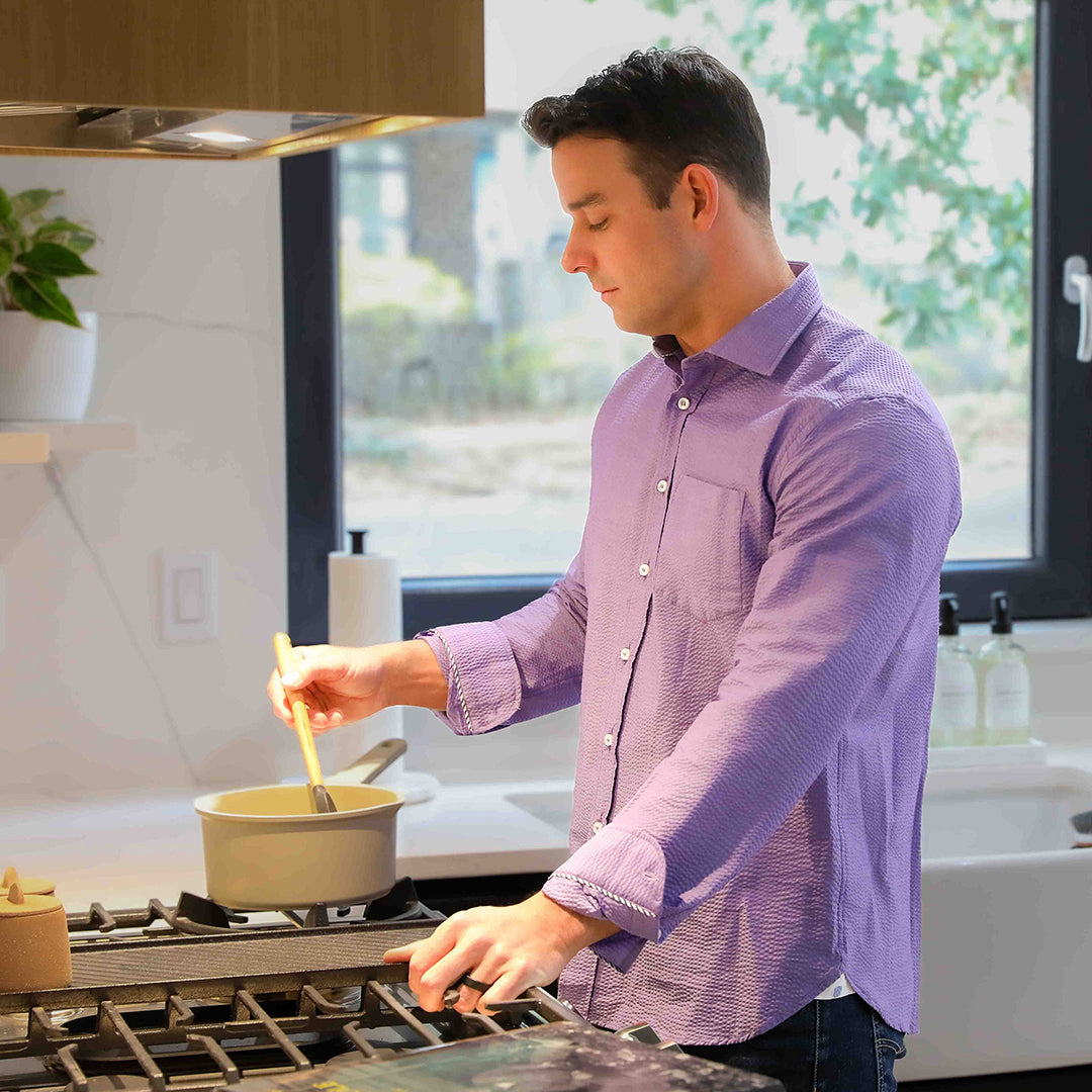 Chartres Long Sleeve Solid Purple Seersucker