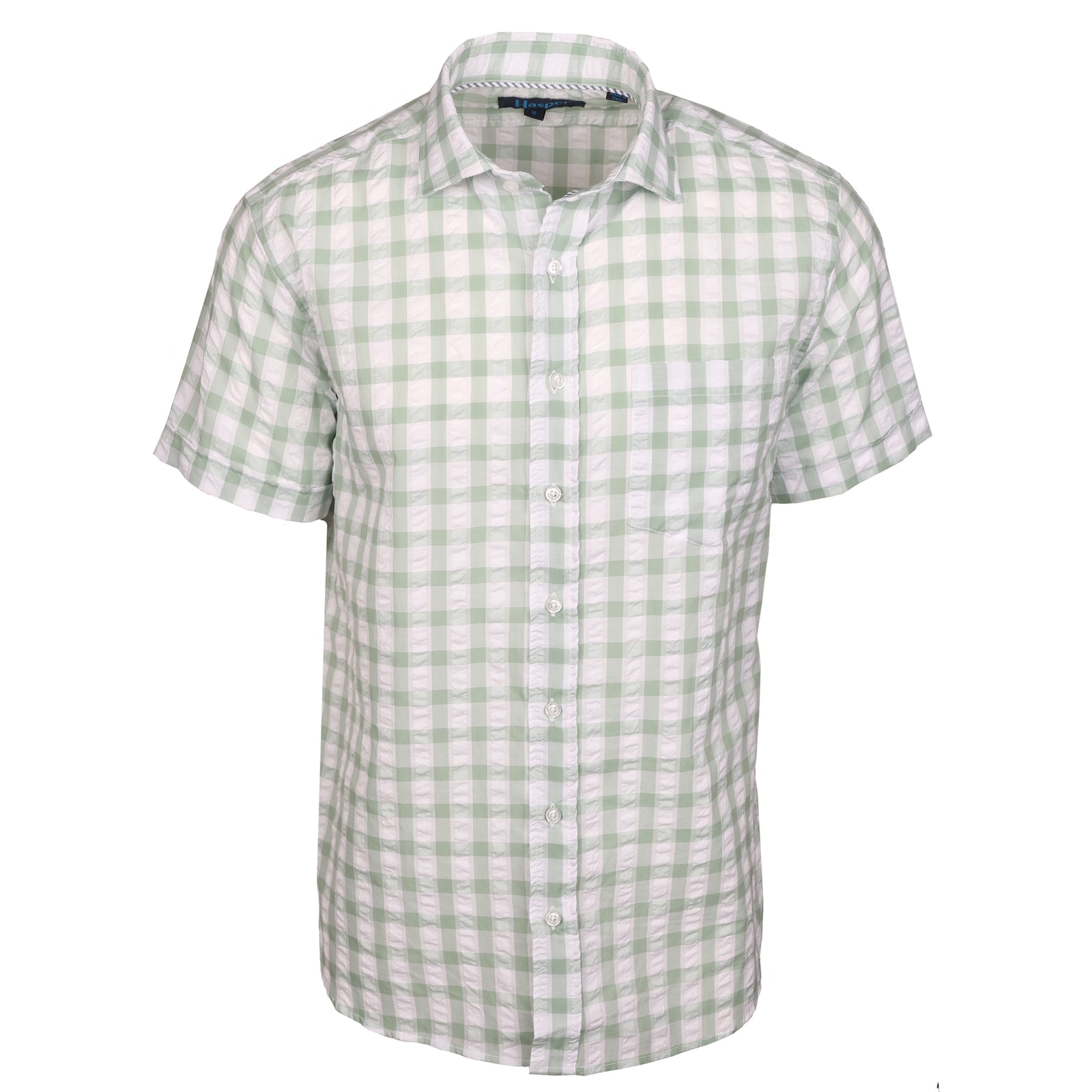 Freret Short Sleeve Solid Green Seersucker