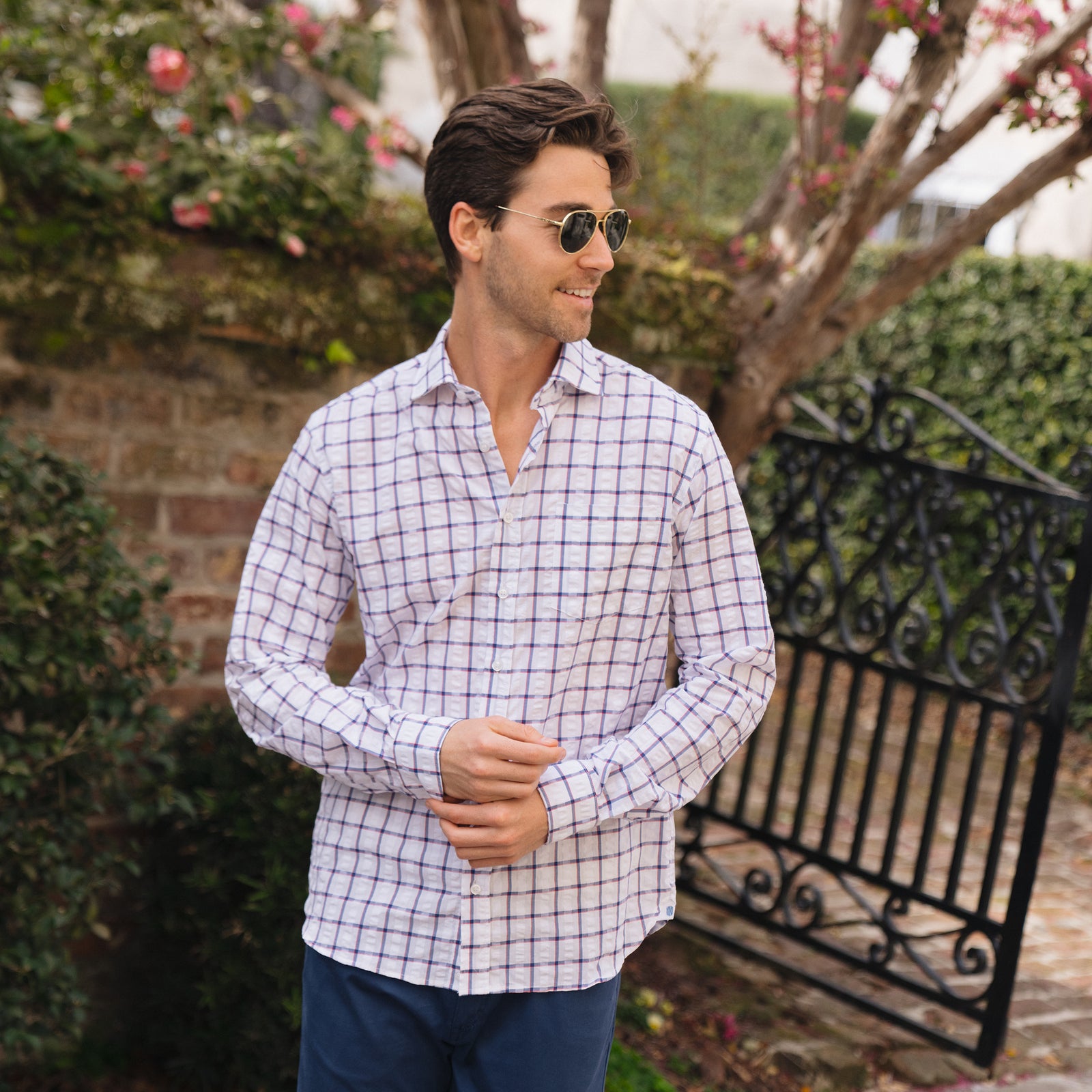 Chartres Brown & White Plaid Seersucker