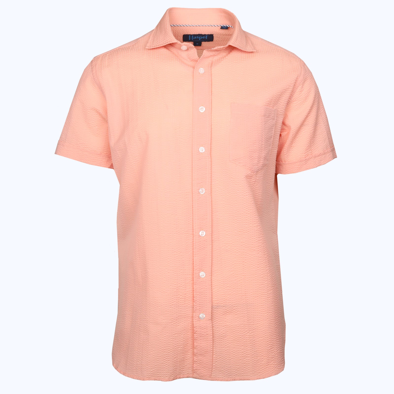 Freret Short Sleeve Solid Peach Seersucker