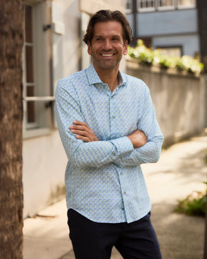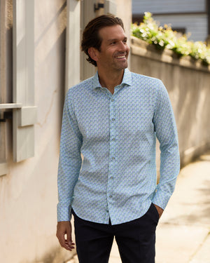 Seville Blue & Green Wave Long Sleeve Shirt