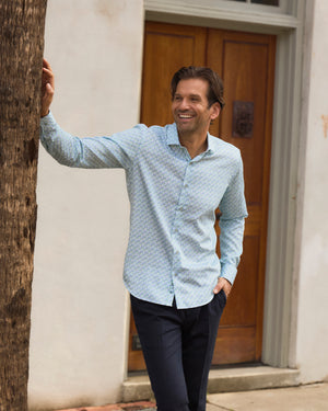 Ride the wave of style and comfort in our Seville Blue & Green Wave Long Sleeve Shirt. Made from light weight breathable cotton, this playful shirt is perfect for any occasion. Whether you're hitting the beach or hanging out with friends, we've got you covered.