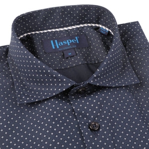 This Erato Navy Texture with White Dot sport shirt will keep you comfortable and stylish. It is made of a soft micro dot patterned material that is breathable and lightweight. You will look sharp while staying cool and comfortable.