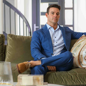 Get ready to make a statement with this elegant Erato Blue End on End look featuring a striking navy and brown diamond pattern. Made from high-quality materials, this shirt is a perfect look for any stylish occasion.