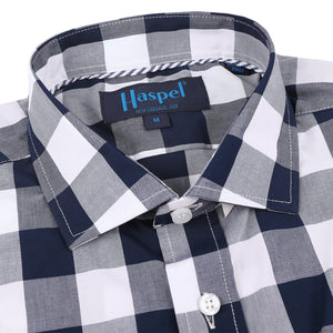 Get ready to stand out from the crowd with our Audubon Exploded Navy & Blue Check shirt. This unique design features a playful, springing forward exploded check pattern.