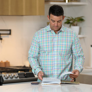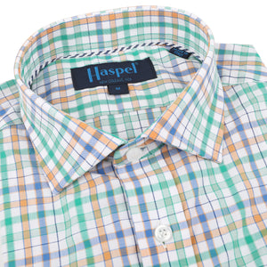Add a pop of color to your spring wardrobe with the Audubon Green, Orange and Blue Check. Perfect for a playful and unique style, this check pattern is sure to turn heads.