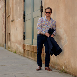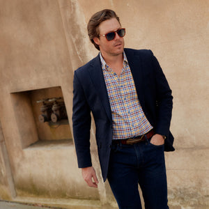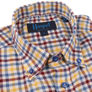 *** FINAL SALE *** Franklin Buttondown Yellow, Blue & Burgundy Brushed Plaid