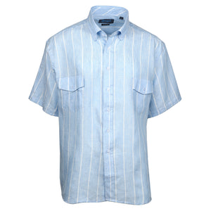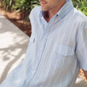 Sea Breeze Short Sleeve Blue Stripe Linen Shirt