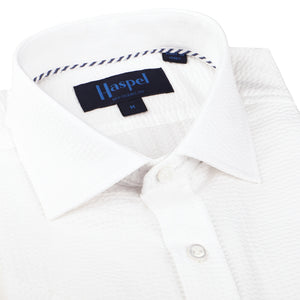 Chartres Long Sleeve White Solid Seersucker