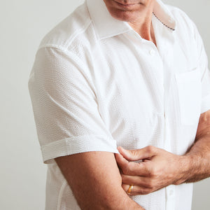 A solid look for a solid guy. THE white shirt you need this season. Seersucker, lightweight, and supremely cool. Available in short or long sleeve.