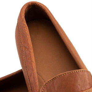 Haspel x T.B. Phelps collaboration made from Genuine American hand-finished bison leather in rich tan color and driver soles. A truly comfortable driving loafer made for a true gentleman.