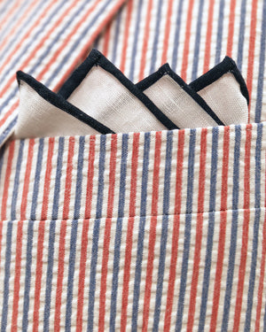Celebrate patriotic style in this LIMITED EDITION Red, White & Blue Seersucker Suit—a bold statement piece that captures timeless American elegance. Built from our exclusive Haspel seersucker with maximized pucker and a whisper of stretch, this suit moves with you while maintaining its crisp, textured character.