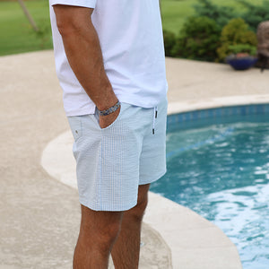 95% Luxe Cotton / 5% Spandex • Classic Fit •Contrast Yoke with Seersucker Piping• Machine Washable • Imported