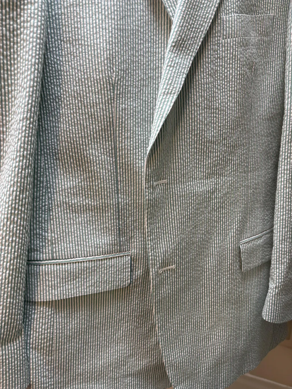 Great seersucker suit. The tailor that only had to do minor alterations said this was a very well-made suit. Fits great off the rack. Had to alter length of pants and slight length of sleeves on jacket. That's it. Great customer service, too.