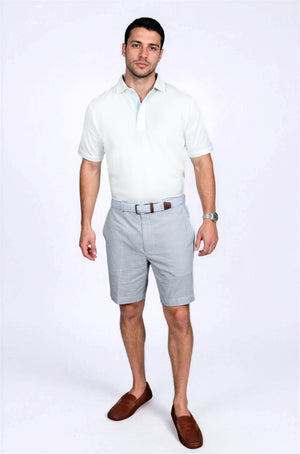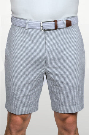 97% Cotton / 3% Lycra Italian Seersucker• Relaxed Fit • Full Tailored Construction with a Split Waistband and Seat • Flat Front • Button Through Closure • Two Back Pockets • 8" inseam • Imported Return Policy